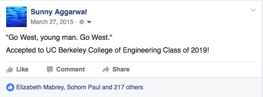 Even in my obligatory college acceptance Facebook post, I used the famous (misattributed to) Horace Greeley quote.While for many people, “California” evokes images of surfing, palm trees, and Hollywood. However, for me, as cheesy as it sounds, “California” has always been the manifestation of “the American Dream”. Of course, my passion for history definitely plays a role in this romanticization. The idea of Manifest Destiny compelled generation upon generation to push west onto the American frontier, where enterprising men (and women) could make a new life for themselves. And the final destination of this westward push is none other than “the Golden Coast”. Whether it’s the 49er Gold Miner, the Silicon Valley entrepreneur, or the aspiring Hollywood actor, California has always been the place for people to go in order to “take a shot” and try to “make it big”.